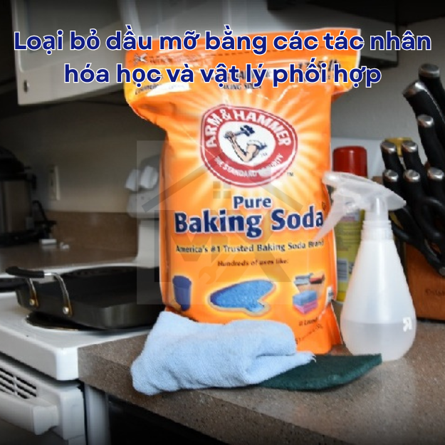 1. Loại bỏ dầu mỡ bằng các tác nhân hóa học và vật lý phối hợp: